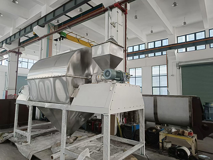 本機(jī)由送料機(jī)、出料部、回轉(zhuǎn)部、傳動(dòng)部、分級(jí)部分組成。中空軸采用鑄件,內(nèi)襯可按用戶要求制作,設(shè)備運(yùn)轉(zhuǎn)平穩(wěn),工作可靠。